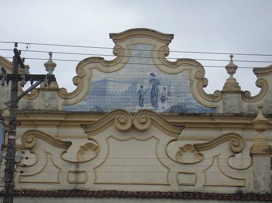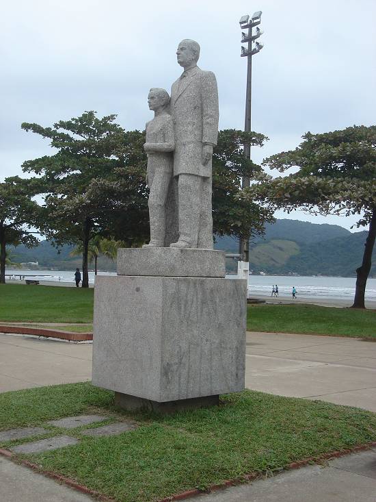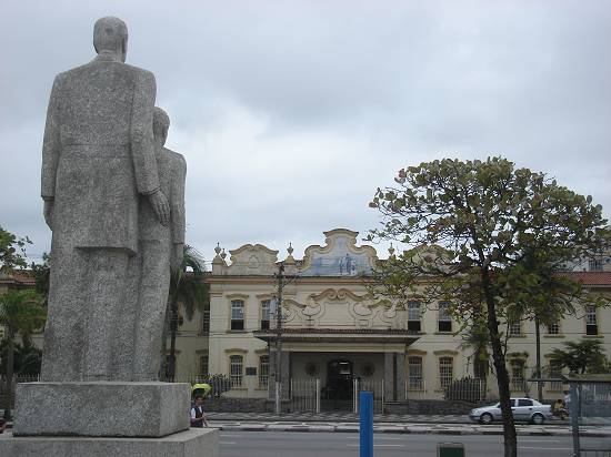 jardim da praia, em frente à Escola Industrial Escolástica Rosa, o monumento a João Octávio dos Santos, fundador daquele estabelecimento de ensino.