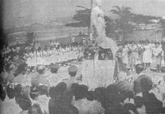 Instituto Escolástica Rosa, vendo-se em volta representações de alunos do estabelecimento, professores e autoridades