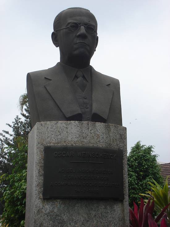 Diretor da Companhia Docas de Santos, Oscar Weinschenck teve a sua herma inaugurada em  14 de julho de 1952, na praça interna existente atrás do edifício da adminstração do porto (situado na Avenida Rodrigues Alves):