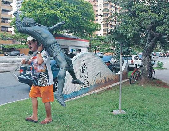 Atual estátua de Pelé é móvel, sendo
