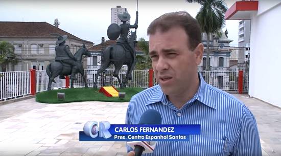 "Seu Luís Garcia Jorge foi o artista que projetou e executou a obra. Ele é da região de Zamora, na Espanha, mas é muito conhecido na nossa Região. Ele fez a estátua de Cristovão Colombo que tem na praia, e muitos outros espalhados pela cidade. Ele foi muito feliz, ele caprichou e deu um presente para comunidade espanhola e comunidade santista de modo geral", diz o presidente do Centro Espanhol de Santos Carlos Fernandez.