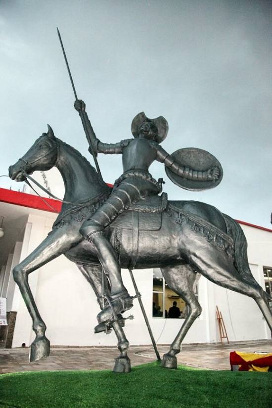 Com seis metros de altura, a maior estátua de Dom Quixote de La Mancha fora da Espanha, agora fica em Santos. A produção levou dois anos e a obra foi feita em resina.