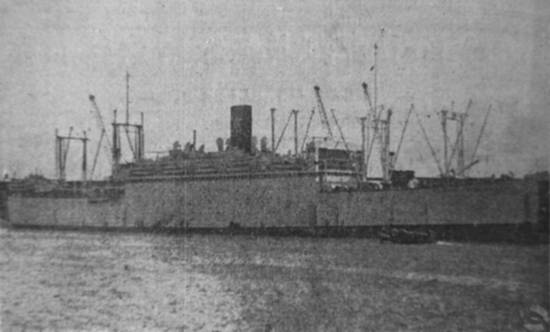 O Cabo de Buena Esperanza fundeado no porto santista, parado devido à recusa dos estivadores
