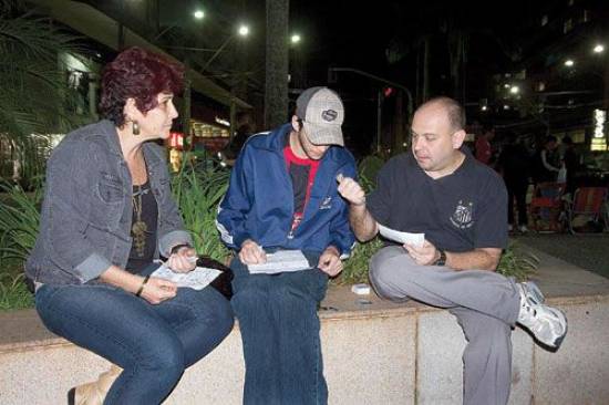 trocando figurinhas. Contudo, uns poucos "comerciantes" insistiam em permanecer próximo à banca de jornais, ignorando a presença de fiscais da