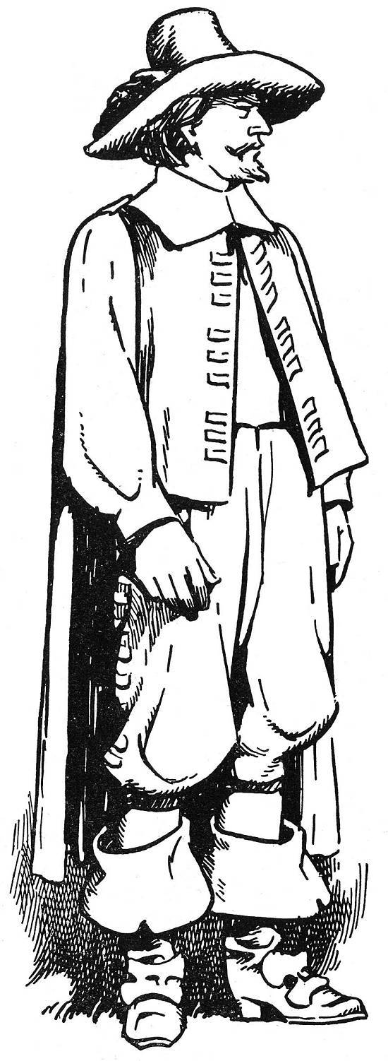 Homem de roupeta e calções de pele de camelo, mangas de tafetá, botas de cordovão (1680) (Inv. e Test.)