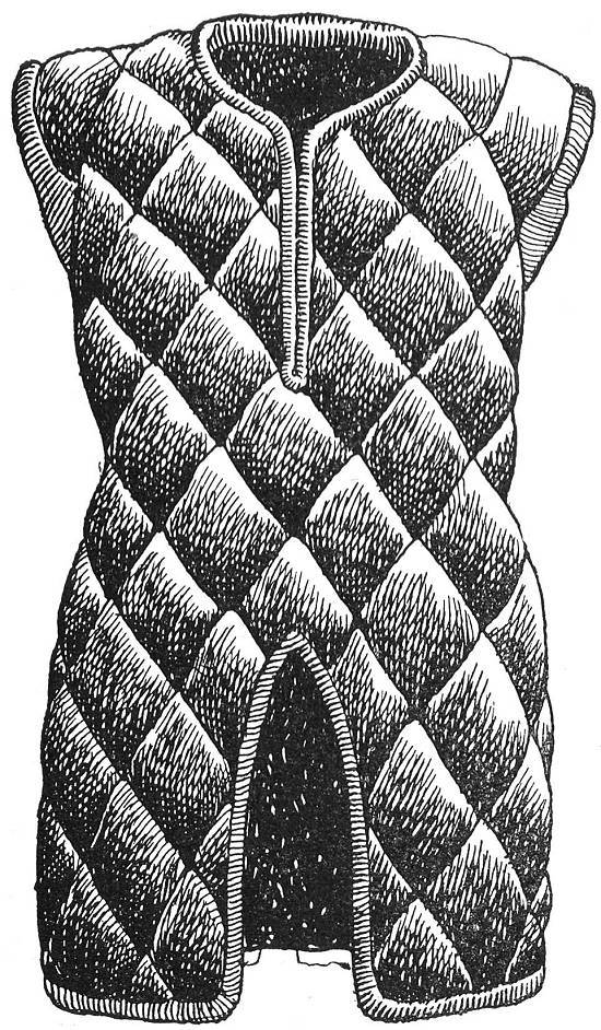 de fazer munições e pelouros com as barras ou arrobas de chumbo. No corpo, como defesa, o gibão de armas, ou armas de algodão, ou armas de vestir - que é um gibão ou ferragoulo recheado de algodão com um acolchoado e que porá o