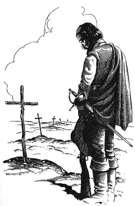 Outros, ainda, nessas marchas épicas do bandeirismo, vão ficando pelo caminho... João Pedroso, o moço, Francisco Ribeiro de Morais, Afonso Dias, Simão Sutil de Oliveira, Antônio Vaz... No solo pisado pelas botas rudes, cava-se uma cova. Um corpo desce e, sobre esse corpo inerte, ergue-se uma cruz - duas vezes simbólica porque ali, naquele sertão bruto, ela vale como um marco fincado no chão, a dizer que ali também é terra da Santa Cruz.