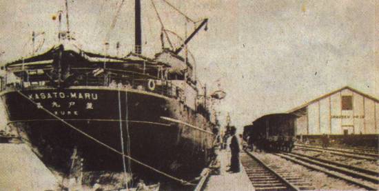 O Kasato Maru, atracado em Santos em junho de 1908