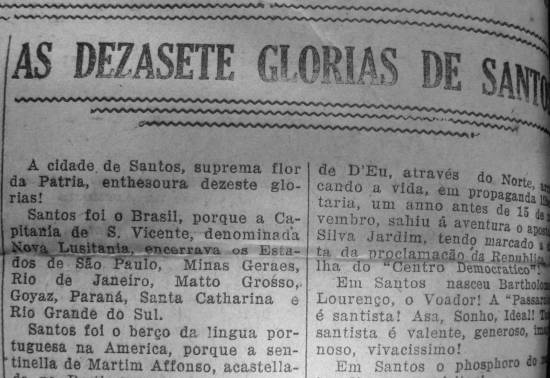 Santos é o viveiro de uma legião de poetas, espelhos da terra, irmãos de Vicente de Carvalho e de