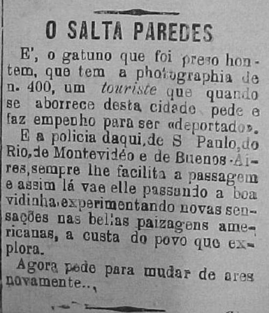 viajando pelo mundo às custas dos outros, como foi registrado em 19 de abril de 1901 pelo jornal Tribuna do Povo, antecessor do atual jornal A