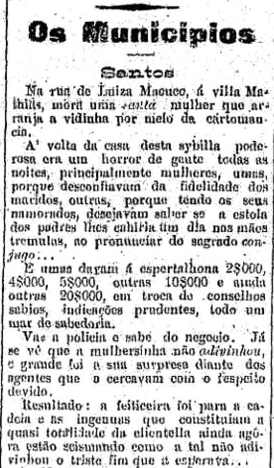Na Rua de Luiza Macuco, à Vila Mathias, mora uma santa mulher que arranja a vidinha por meio da cartomancia.