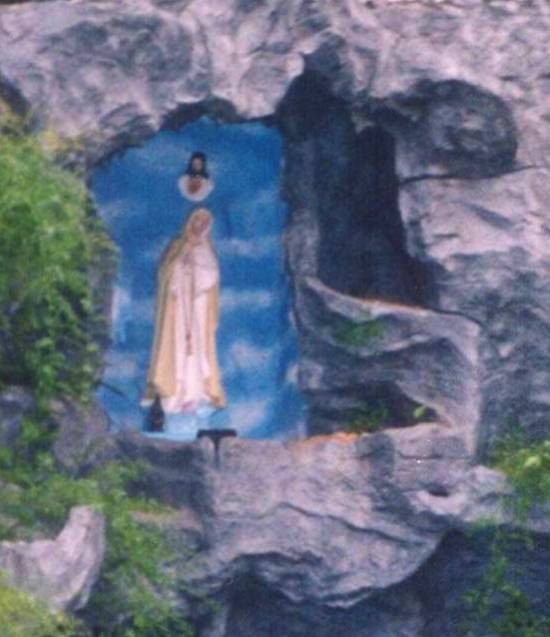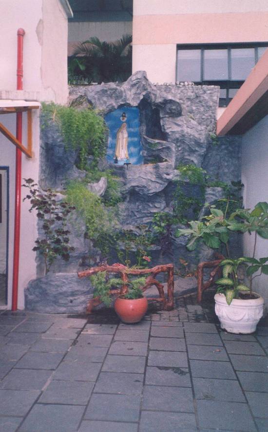Gruta de Nossa Senhora de Fátima, com a imagem vista no pormenor, nas antigas instalações do Colégio Coração de Maria na Rua da Constituição,