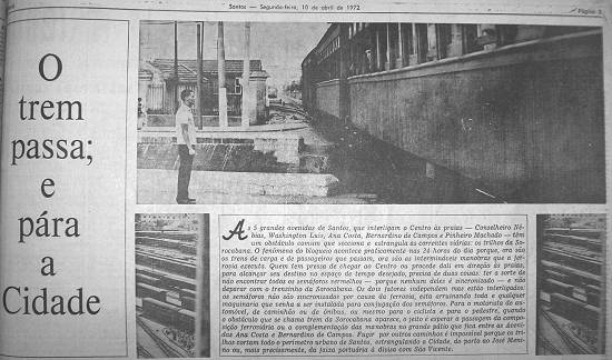 Por mais de um século, a população de Santos enfrentou o problema representado pela passagem de trens na área urbana, interrompendo o trânsito em todas as principais avenidas, às vezes por longo período para manobras, ou de madrugada acordando com o apito das locomotivas - além dos acidentes periodicamente ocorridos com motoristas imprudentes ou equipamentos falhos de sinalização. Só em 2008 os trens foram desviados para fora da área urbana, encerrando as criticadas travessias por dentro da cidade, como as citadas nesta matéria publicada pelo jornal A Tribuna em 10 de abril de 1972 (página 3):