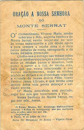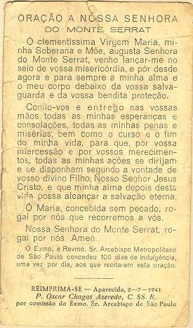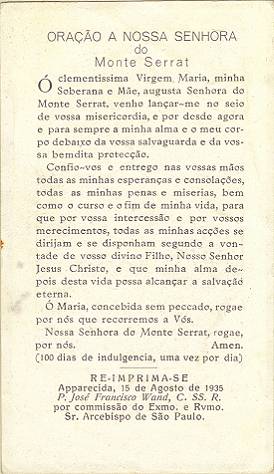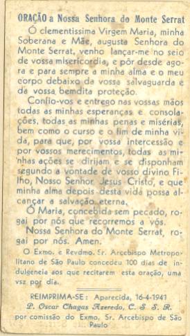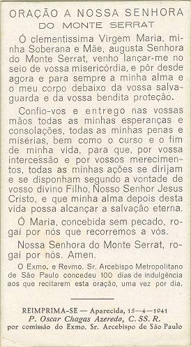 Tradição nas igrejas, por ocasião de comemorações religiosas, é a distribuição aos fiéis dos chamados santinhos, com a imagem do santo homenageado e no verso uma prece. Em Santos, há exemplares do início do século XX, em alguns casos impressos especialmente para a festividade, em outros apenas comprados em São Paulo ou no exterior para distribuição em certa data, ou, o que é mais comum, com uma estampa colorida na frente e sem nada no verso, este então impresso com a mensagem específica. As imagens a seguir foram oferecidas a Novo Milênio pelo professor e pesquisador Francisco V. Carballa: