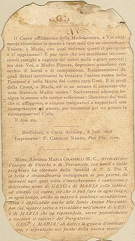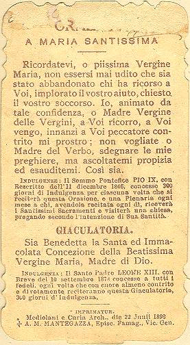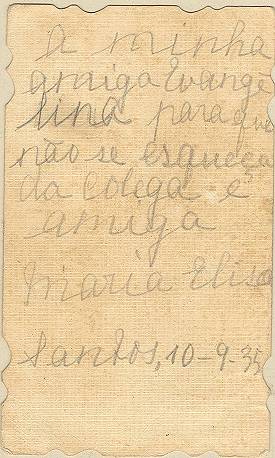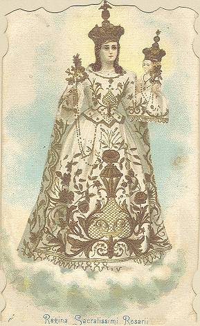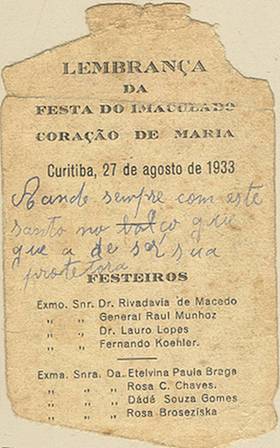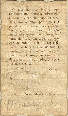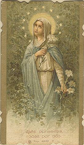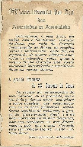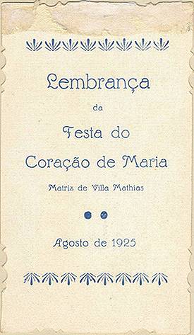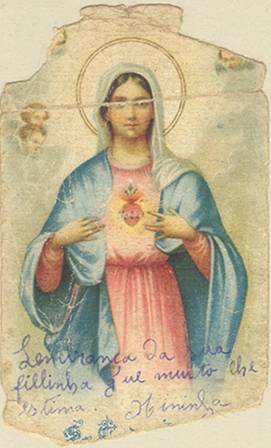 Tradição nas igrejas, por ocasião de comemorações religiosas, é a distribuição aos fiéis dos chamados santinhos, com a imagem do santo homenageado e no verso uma prece. Em Santos, há exemplares do início do século XX, em alguns casos impressos especialmente para a festividade, em outros apenas comprados em São Paulo ou no exterior para distribuição em certa data, ou, o que é mais comum, com uma estampa colorida na frente e sem nada no verso, este então impresso com a mensagem específica. Eis outras imagens: