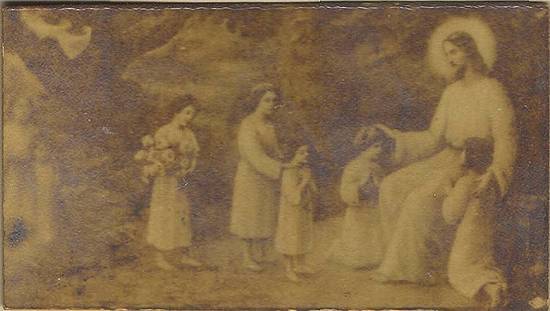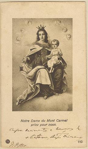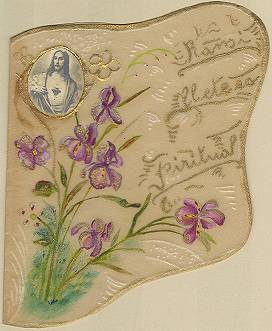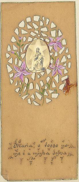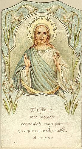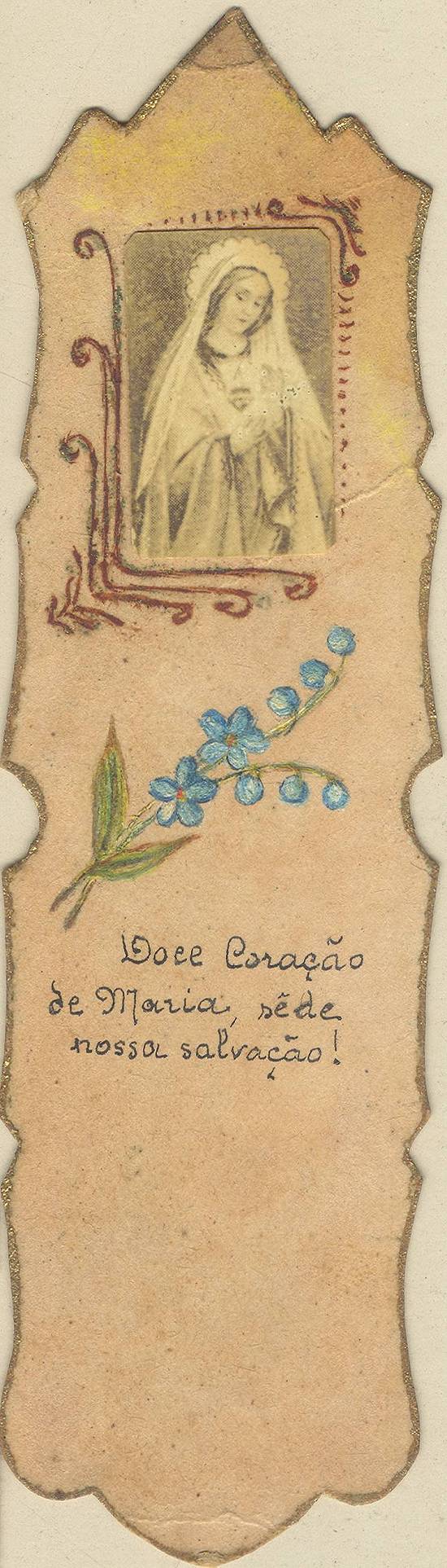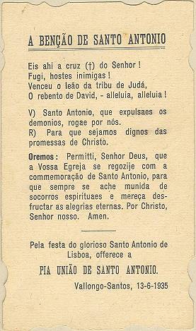 Tradição nas igrejas, por ocasião de comemorações religiosas, é a distribuição aos fiéis dos chamados santinhos, com a imagem do santo homenageado e no verso uma prece. Em Santos, há exemplares do início do século XX, em alguns casos impressos especialmente para a festividade, em outros apenas comprados em São Paulo ou no exterior para distribuição em certa data, ou, o que é mais comum, com uma estampa colorida na frente e sem nada no verso, este então impresso com a mensagem específica. Eis outras imagens:
