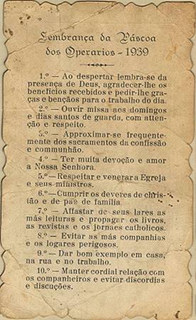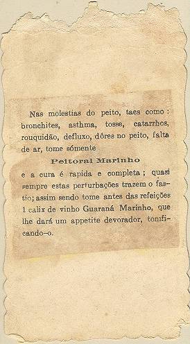 com a imagem do santo homenageado e no verso uma prece. Em Santos, há exemplares do início do século XX, em alguns casos impressos especialmente para a festividade, em outros apenas comprados em São Paulo ou no exterior para distribuição em certa data,