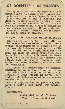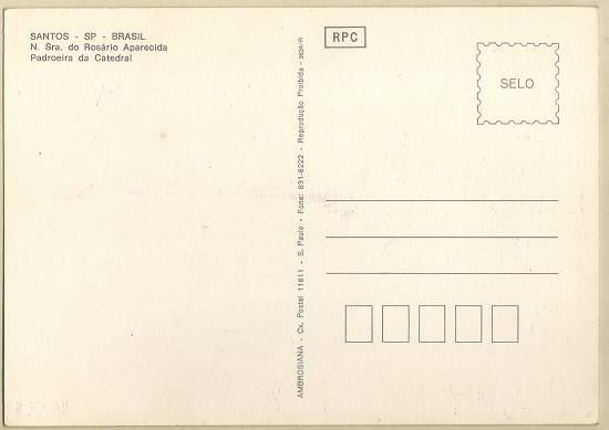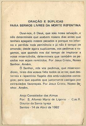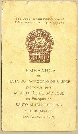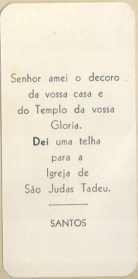 com a imagem do santo homenageado e no verso uma prece. Em Santos, há exemplares do início do século XX, em alguns casos impressos especialmente para a festividade, em outros apenas comprados em São Paulo ou no exterior para distribuição em certa data,