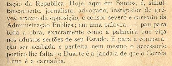 adustos sertões do seu estado. E para a comparação ser acabada e perfeita, nem mesmo o acessório poético lhe falta: o Duarte é a jandaia de que o