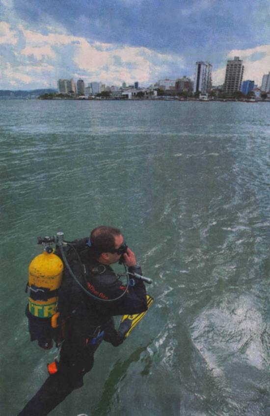 anos no Porto de Santos. A embarcação está afundada a 25 metros de profundidade, entre os píeres da Marinha e da Praticagem, na Ponta da Praia.