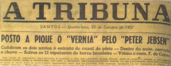 em Guarujá, após uma colisão com o navio Peter Jebsen, norueguês.