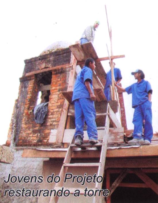 Jovens do Projeto restaurando a torre