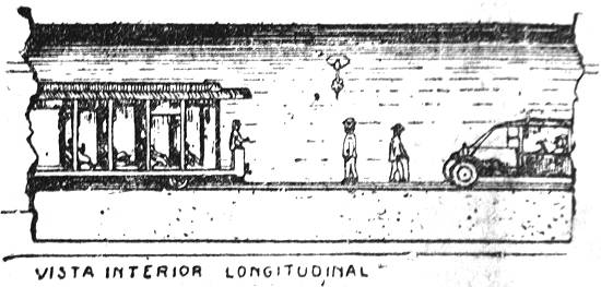para duas linhas (ida e volta) e adaptável ao tráfego de qualquer veículo em movimento simultâneo: bondes, ônibus, automóveis, carroças de tração