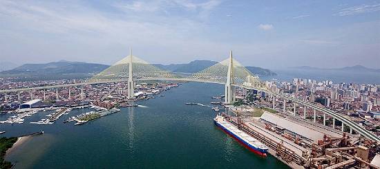 central a 70 metros de altura acima do mar, o que permite a passagem de navios". Com 2,8 km de extensão, terá 800 metros de trecho estaiado e