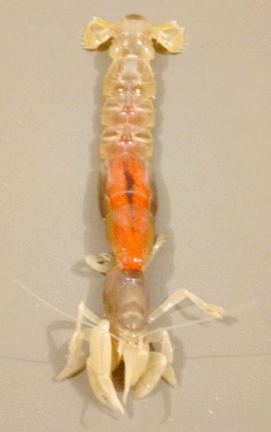pertence a família Callianassidae, apresenta indivíduos maiores atingindo aproximadamente 20 centímetros de comprimento, tendo o abdome