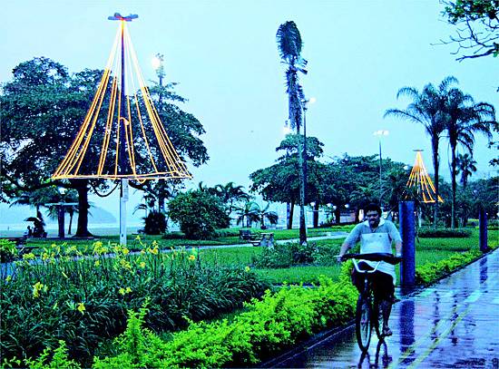 A prefeitura acionou ontem a iluminação de Natal, que destaca ainda mais a beleza dos jardins da orla no período noturno e alguns pontos turísticos da cidade.