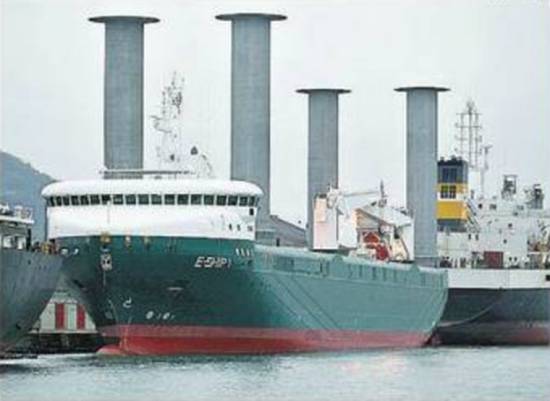 principais na movimentação de embarcações. A empresa alemã Enercon Shipping GMBH apostou na técnica e desenvolveu o E Ship 1, um cargueiro considerado revolucionário por ser movido por energia eólica. Ele chegará ao Porto de Santos amanhã.