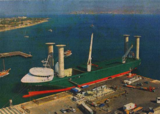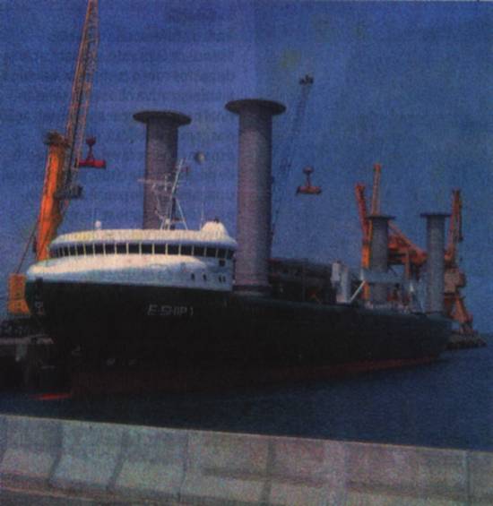 "retomar" uma posição de destaque na movimentação de grandes embarcações. É o que prova o navio alemão E Ship 1, um cargueiro considerado revolucionário, movido por energia eólica. Ele