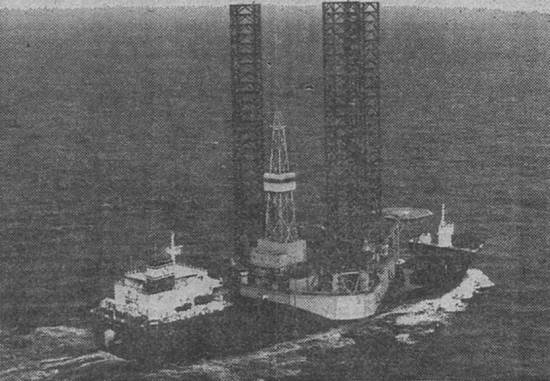 plataforma Ocean Master VI, que só deve ser baixada quando a plataforma chega ao ponto onde deve perfurar o poço petrolífero – começou a baixar, por vazamento no sistema hidráulico, obrigando a um afastamento maior da costa para a obtenção