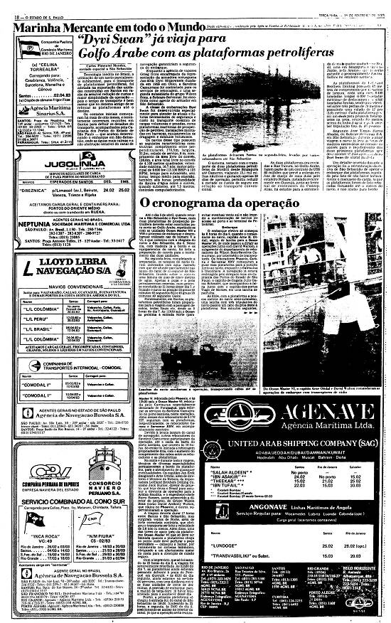 Até o dia 5 de abril, quando retorna a São Sebastião o Dyvi Swan, mais duas plataformas de prospecção petrolífera deverão estar concluídas para envio ao Golfo Árabe, repetindo-se com as