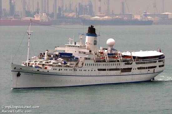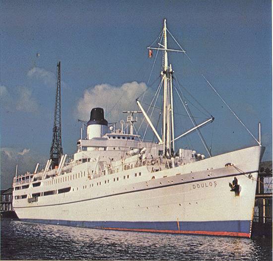 Construído em 1914 nos Estados Unidos, com o nome Medina, o navio é hoje o mais antigo transatlântico do mundo em serviço, tendo sido comprado e completamente reformado em 1970 pelos membros da Operação Mobilização (um movimento internacional de jovens crentes, dedicados à ajuda de Missões). O nome Doulos significa servo, no grego da época do Novo Testamento. Cerca de 300 pessoas, todas voluntárias, vivem a bordo, operando o navio e organizando as programações desenvolvidas nos inúmeros portos, onde escala aquela embarcação de 6.822 tpb (N. E.: toneladas de porte bruto), 130,35 metros de comprimento, 16,54 metros de largura, e 7 metros de calado, registrada no porto de Malta. No Brasil, as operações portuárias são coordenadas pela agência marítima Wilson, Sons.