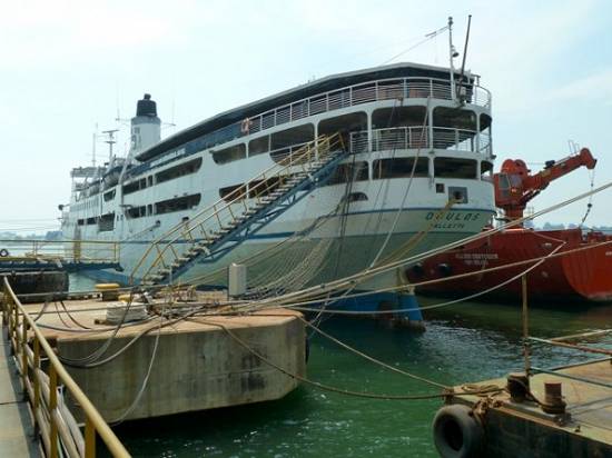 O Doulos, escalando em Cingapura, nas Filipinas, em 30 de novembro de 2008. A embarcação viajaria mais um ano, até fazer a última escala nesse mesmo porto, de 7/10/2009 a 18/10/2010