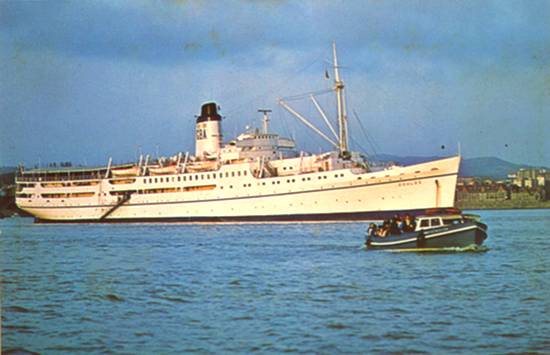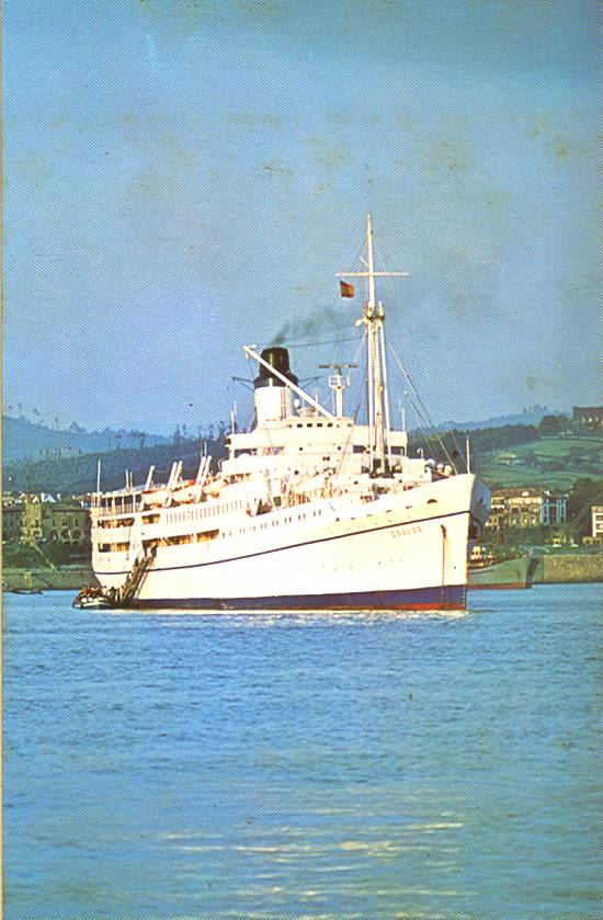 Imagens: cartão postal vendido a bordo do navio em 1981, trílingue (alemão/inglês/espanhol)