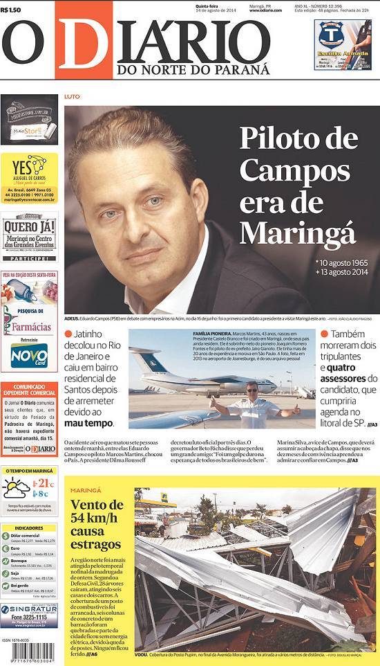 ganhou imediata repercussão mundial por ter entre as vítimas um candidato à presidência da República em plena campanha eleitoral, o ex-governador de Pernambuco, Eduardo Campos, e seus assessores, num jato que caiu no bairro do Boqueirão.
