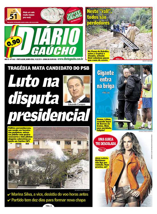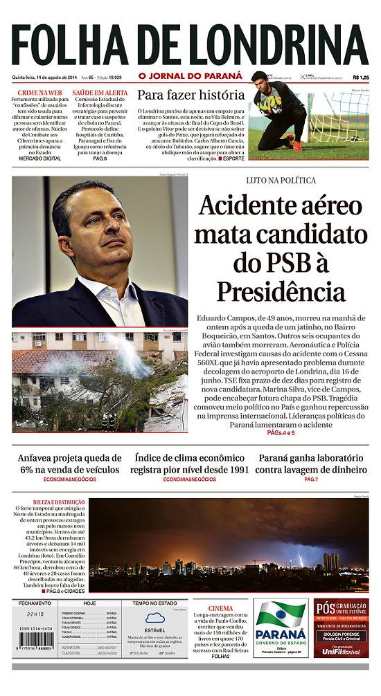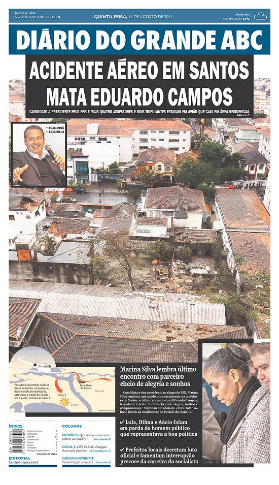 O acidente com o avião foi destacado no dia seguinte em inúmeros jornais de todo o país (capas, no acervo do jornalista Allan Nóbrega):