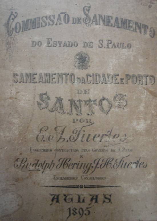 Em 1895, a Comissão de Saneamento do Estado de São Paulo, capitaneada pelo engenheiro E. A. Fuertes e tendo como engenheiros consultores Rudolph Hering e J.H. Fuertes, publicou um Atlas, com plantas, mapas e esquemas relacionados aos projetos de saneamento de Santos. Um exemplar da obra faz parte do acervo da Sociedade Humanitária dos Empregados no Comércio de Santos. Entre outras imagens, há esta planta geral da cidade (clique na imagem para ampliá-la):