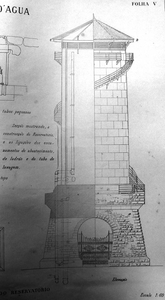 Numa das folhas, detalhes do reservatório projetado: