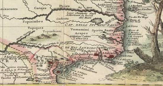 Publicada em Veneza, na Itália, por volta de 1740, esta Carta geografica del Brasil
