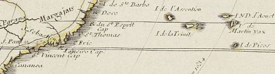 No detalhe, o litoral paulista, alcançando as ilhas atlânticas próximas ao Trópico de Capricórnio:
