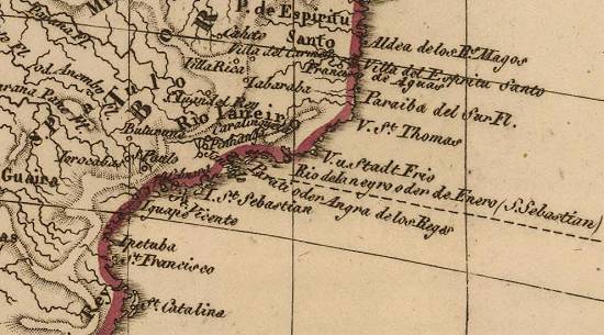 1803, este Atlas des ganzen Erdkreises in der Central-Projection entworfen, de Christian Gottlieb Reichard, mostra a América do Sul com