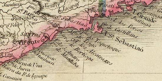 Com maior aproximação, este pormenor mostra o litoral paulista: