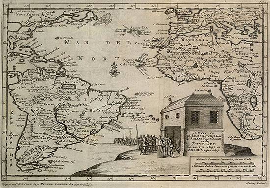 verwonderlijk-seldsame Voorvallen op de selve, van Antony Knivet, gedaan uyt Engelland na de ZuydZee, met Thomas Candish, anno 1591 en de volgende Jaren, publicado por Pieter van der Aa em 1706 na cidade de Leyden: