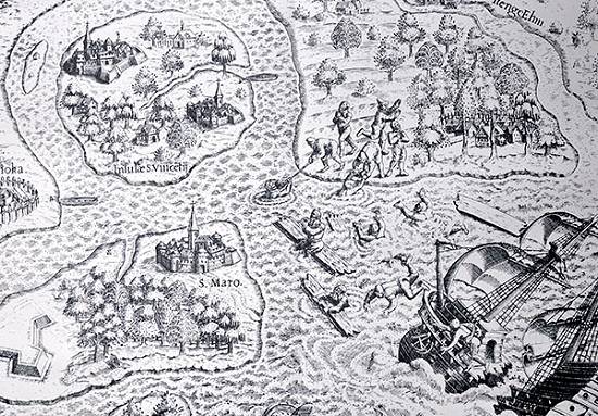 No entanto, na imaginação fértil de alguns cartógrafos, que recolhiam informações dos marinheiros que se aventuravam pelas novas terras descobertas na América, para produzir iconografias referenciais aos monarcas europeus, Santos era exibida de uma maneira muito, mas muito fantasiosa.