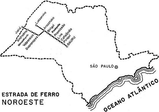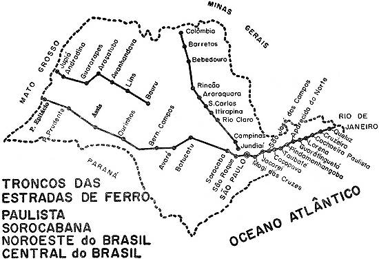 Com objetivos didáticos, mapas com as cidades paulistas servidas pelas estradas de ferro eram divulgados em livros escolares de Geografia, no início da década de 1970, como estes: