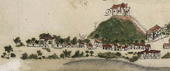Outro detalhe, vendo-se a "Igreja de S. Catharina no cume de hum monte" (marcada