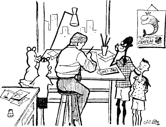 demonstravam viva admiração. Todos se chegaram à prancheta de trabalho. Estavam gostando de ver Lobo desenhar com tanta facilidade.